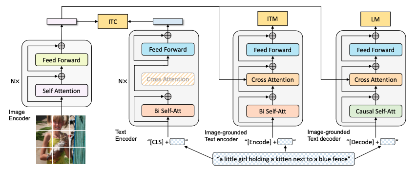 ICML, 2022, ciation 632 BLIP : Bootstraping Language-Image pre-training for unified vision-language understanding and generation Introduction vision-language pre-training의 두가지 기존 한계점 모델 관점 : 기존 VL-pretraining 모델들은 대부분 encoder-based거나 encoder-decoder based이다. 구조적 한계로 인해 특정 task(image understanding, text generation)등에만 강한 모습을 보였다.encoder-decoder model : image-text retrieval task에 약함 encoder-based ..